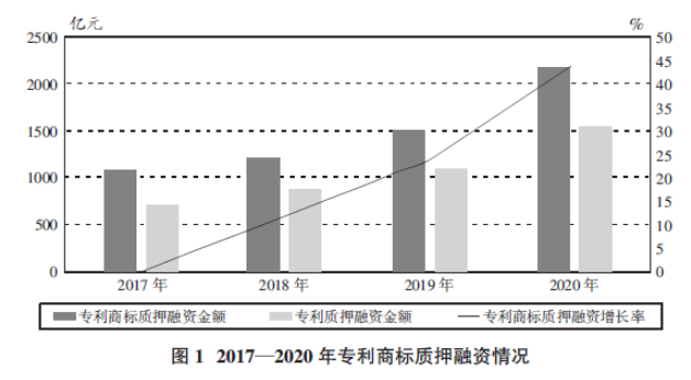 2019年,中國銀保監會、國家知識產權局、國家版權局發布《關于進一步加強知識產權質押融資工作的通知》。“十三五”期間,中國專利轉讓、許可、質押等運營(以下統稱專利運營)的總次數達到138.6萬次,是“十二五”期間的2.5倍,年均增速達到23.7%,超過“十二五”平均增幅9個百分點;專利質押融資金額達到4705億元,是“十二五”期間的3.1倍。2020年專利運營次數達到40.5萬次,專利質押融資金額達到1558億元,均是“十二五”末期的2.8倍。