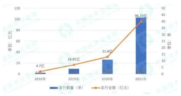 中國技術交易所(北京知識產權交易中心)發布《2018年-2021年中國知識產權證券化市場統計報告》。報告顯示,截至2021年12月31日,在深交所和上交所設立發行的知識產權ABS(知識產權資產證券化)共59單,累計發行規模149.18億元,為超過800戶企業提供了融資服務,平均融資額度約1800萬元/戶。