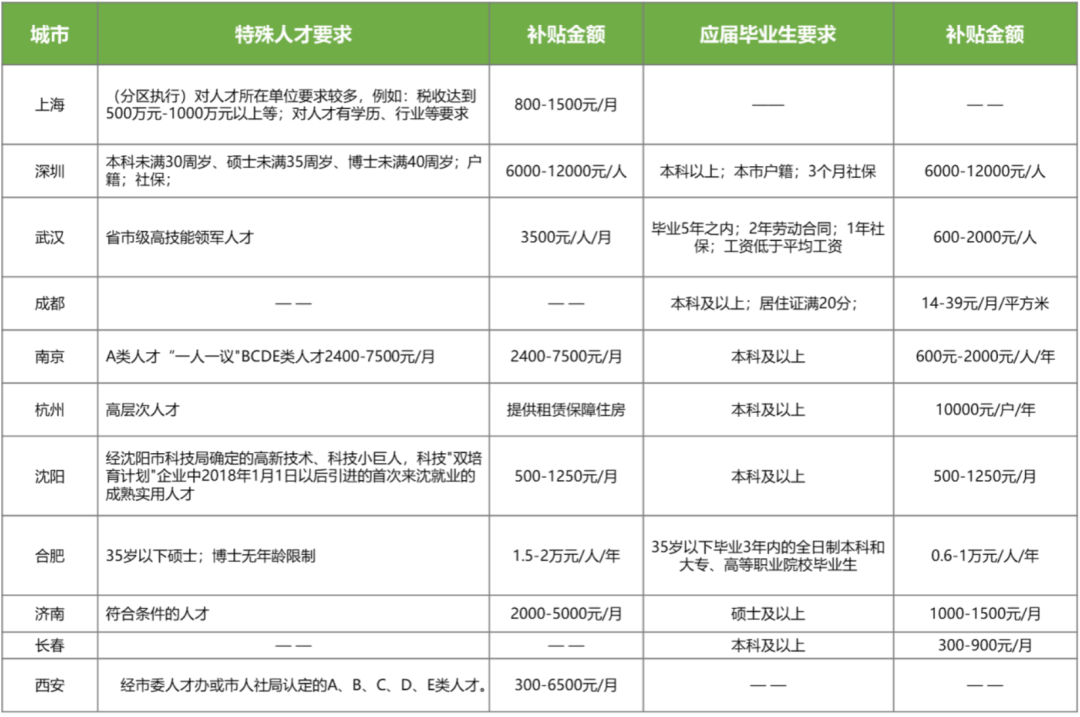 目前,一、二線城市房價高企,人才通過補貼買房的難度相對較大,但租房能夠較好的緩解居住的壓力,因此,各城市根據自身情況制定了不同的引進人才租賃補貼政策,幫助應屆畢業生和特殊人才在解決就業問題的基礎上完成第一階段的安居問題。