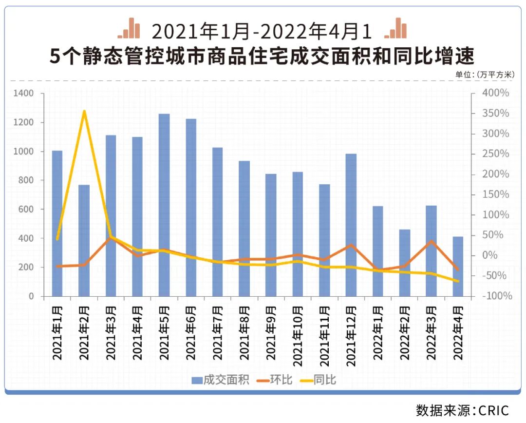 超30城緊急實行靜態管控,房地產市場近乎停擺,成交加速下滑,4月15個靜態管控城市成交同比跌幅大降六成,3個尚在靜態管控中的城市周度成交同比近乎腰斬。