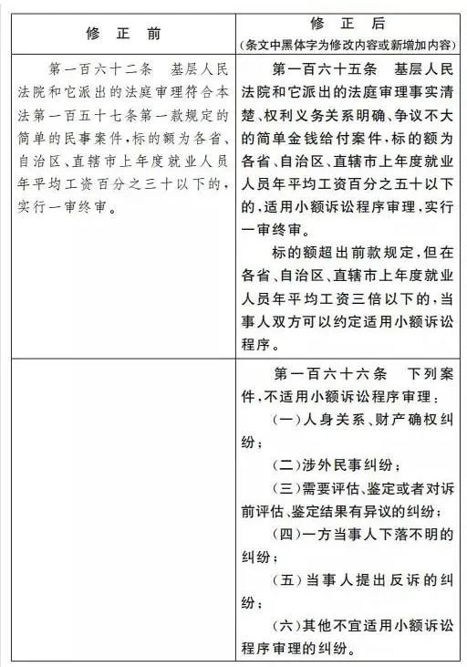 五、小額訴訟程序適用標(biāo)的額從原來(lái)的“各省、自治區(qū)、直轄市上年度就業(yè)人員年平均工資百分之三十以下”提升到“百分之五十以下”,新增當(dāng)事人合意選擇適用模式。