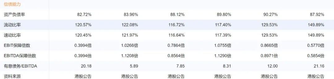 償債能力如何?從企業預警通的統計里,杠桿地產看到,2021年中期,融創中國的資產負債率較去年末有所下降,但EBIT保障倍數、EBITDA保障倍數、有息債務/EBITDA均變動比較嚴重。這幾項都是反映企業債務水平、償債能力等方面的指標。