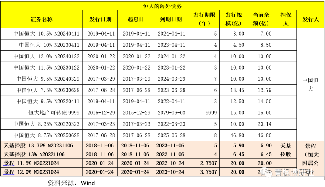 (五)初步統計,境外直接債務227億美元,具體包括公開市場發行的142億美元債券、景程發行的52億美元、33億美元項目融資與私募融資等其它債務。另存在恒大境外主體為境內融資提供的保證擔保、回購承諾等或有債務(具體信息未公布),目前正在梳理或有債務的相關細節。也即境外債務底數還未摸清。