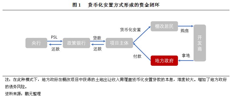 從宏觀來看,棚改貨幣化安置對于三四線城市房地產市場去庫存功不可沒。棚戶區改造短期內大量釋放居民購房需求,而來自于PSL的貨幣化安置資金則直接提高了房地產到位資金,刺激房地產銷售向好、房價地價全面上行,對地區當前經濟穩定和未來經濟發展均具有明顯的拉動效應。有機構曾測算,2017年我國棚改計劃開工600萬套,即使按照50%安置比例中性假設,就可以實現2.55億平方米的去庫存規模。根據統計局的數據,截至2018年5月末,全國商品房待售面積5.6億平方米,創最近46個月的新低。去庫存進程告一段落。隨著去庫存任務的基本完成,爆發式增長的貨幣化安置方式帶來的諸多問題開始逐漸顯現。一方面,貨幣化方式被視作三四線城市住房價格非理性上漲的推手之一;另一方面,不規范的貨幣化安置項目則存在提高政府隱性債務風險的可能。一些地區不規范的貨幣化安置項目,本身土地出讓收入無法覆蓋政策性銀行的貸款本息,以土地出讓后的商業開發收入作為專項收入來源,實現項目的融資平衡。而事實上貨幣化安置過程中政府并不是商業開發主體,導致投資與收益的不匹配,地方政府財政無形中承擔了相當部分的還款責任。