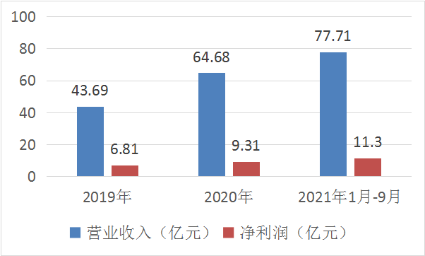 數據顯示,自2019年到2021年9月,龍湖智創生活營業收入分別為43.69億元、64.68億元、77.71億元,凈利潤則分別為6.81億元、9.31億元、11.3億元,2021年1-9月同比有明顯增長。其公司營收和凈利潤均實現“三連跳”,增長速度不斷加快。