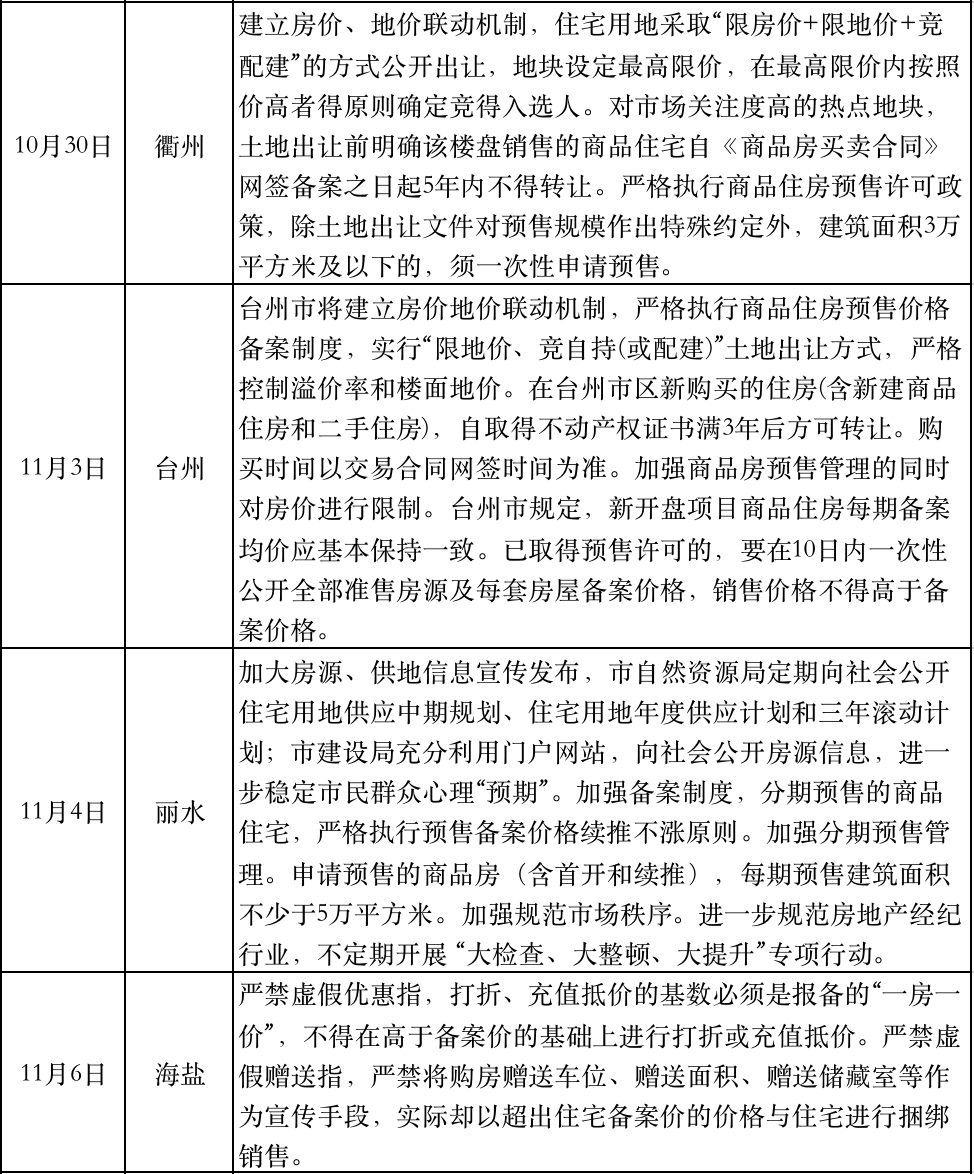 “十四五”規(guī)劃建議發(fā)布的同一天,浙江臺(tái)州升級(jí)了樓市調(diào)控,規(guī)定在臺(tái)州市區(qū)新購買的住房(含新建商品住房和二手住房),自取得不動(dòng)產(chǎn)權(quán)證書滿3年后方可轉(zhuǎn)讓。麗水緊跟其后明確“四個(gè)加強(qiáng)”調(diào)控措施。