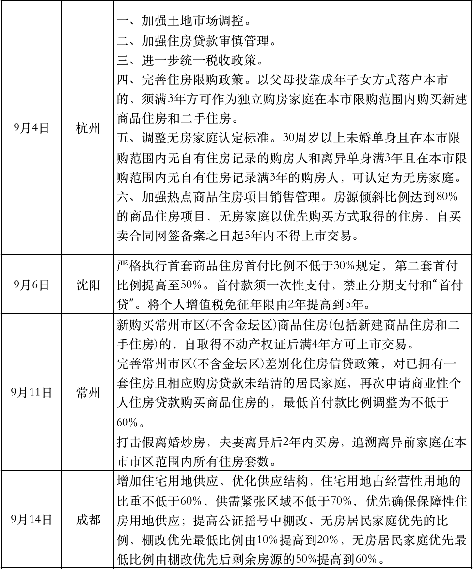值得注意的是,三季度以來,多個(gè)熱點(diǎn)城市出臺(tái)樓市調(diào)控背景下,樓市整體平穩(wěn)運(yùn)行,但三四線城市打補(bǔ)丁政策趨勢(shì)依然持續(xù),“房住不炒”全面升級(jí)。