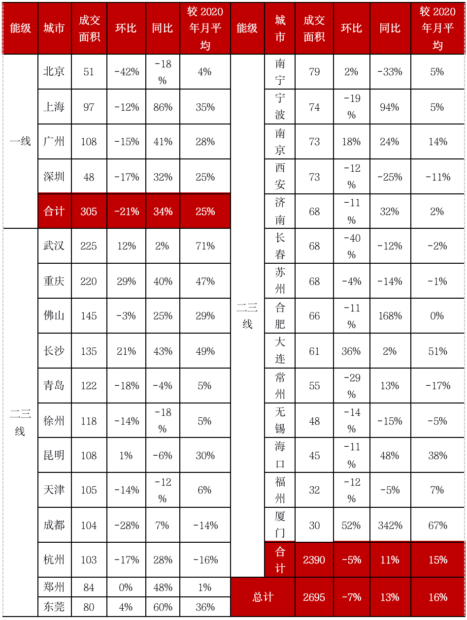 二三線城市成交面積2390萬平方米,環(huán)比下降7%,同比增長(zhǎng)13%。從絕對(duì)量看,武漢、重慶等整體成交依舊處于二線城市前列,10月成交量均超200萬平方米。從同、環(huán)比變化看,不同城市行情相對(duì)獨(dú)立:一方面,武漢、重慶、長(zhǎng)沙、東莞、南京、大連、廈門等城市成交穩(wěn)步回升,同、環(huán)比齊增;另一方面,青島、徐州、天津、西安、長(zhǎng)春、蘇州、無錫、福州等城市成交熱度穩(wěn)步回落,市場(chǎng)表現(xiàn)不及預(yù)期。