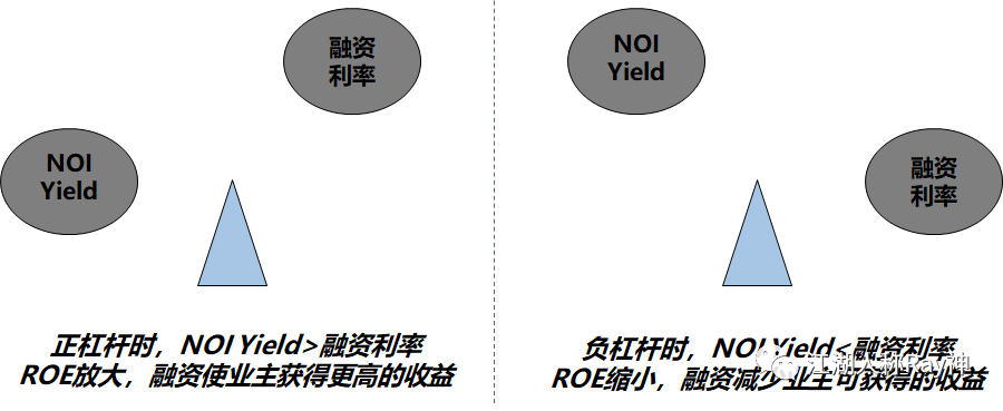 簡單來說,一項物業(yè)能帶來的回報是此消彼長的,如果ROE/ROIC趕不上融資利率,意味著融資越多則自身的回報會越低。這其實也就是正負杠桿的原理——只有跑贏了利率,融資才能真正讓業(yè)主獲得預期的價值。
