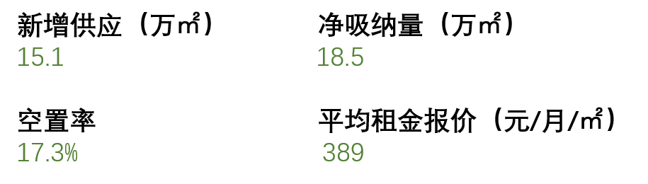 受互聯(lián)網(wǎng)頭部企業(yè)的收縮影響,季內(nèi)整體市場活躍度有所放緩,凈吸納量環(huán)比下降55%至3.1萬平方米,空置率上調(diào)至18.9%。