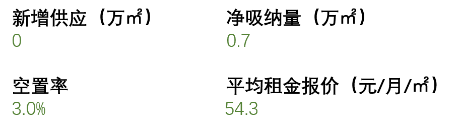 由于可租面積緊俏,本季租賃大多以5,000平方米左右的基本單元面積成交。凈吸納量環(huán)比上升58%至6,800平方米,空置率環(huán)比下降0.3個百分點至3.0%。