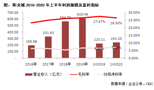 但根據2020年半年報數據顯示,2020年上半年里,陽光城實現歸母凈利潤17.03億元,同比增長17.53%。未來4年,歸母凈利潤平均年增長率若想達到高于18.13%,陽光城壓力還是比較大的。