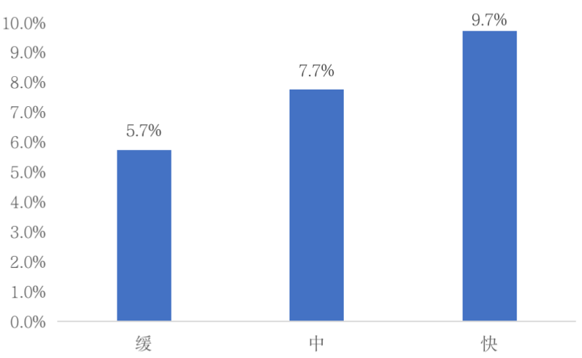 對比不同增速的城市近十年商品住宅成交面積變化來看,“緩增型”城市的市場規模增長明顯要慢于“快增型”城市,近十年復合增長率僅有5.7%,較“快增型”城市低了4個百分點。