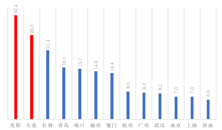 從區域分布來看,這些城市多以北方二線城市為主,近年來經濟發展速度相對沿海二線較慢,高收入的新興產業發展速度較慢,因此在人才爭奪戰中也處于下風,如天津、濟南、長春和哈爾濱等城市近十年大學生比例漲幅均處于二線城市下游。在此影響下,這些城市的房價上漲動力也比較薄弱,整體增速偏緩,如哈爾濱2020年商品住宅成交均價仍未破萬,近十年房價復合增長率僅有6%。
