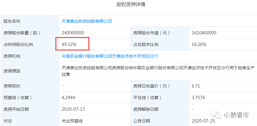 根據(jù)最新披露,泰達(dá)控股已將2.4億股泰達(dá)股份股票質(zhì)押,占其所持股票比例的49.32%,并將所持泰達(dá)航母旅游集團(tuán)的全部股票質(zhì)押。