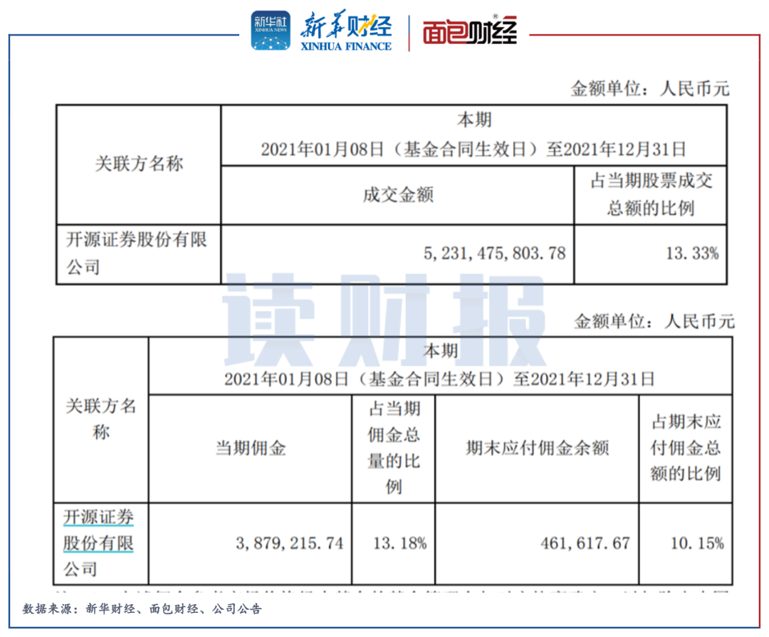 另外,基金2021年年報中提及,前海開源優質企業6個月持有混合約52.31億元的股票成交通過關聯方開源證券交易單元進行,占當期股票成交總額的13.33%;當期應支付給開源證券的傭金達到387.79萬元。公開資料顯示,開源證券為前海開源四大股東之一,持有公司25%股份。