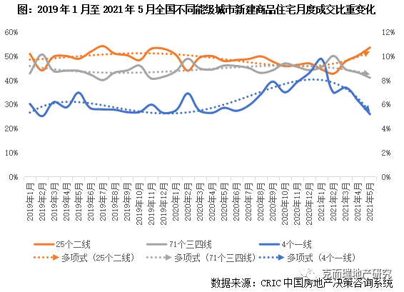 基于供應穩(wěn)中有增的分析邏輯,隨著供應放量,預計2021年下半年成交有望持續(xù)小幅增長或與持穩(wěn),而三四線城市因需求透支疊加購買力下降,短期內(nèi)成交或將保持回落趨勢。
