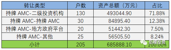 按轉讓及受讓主體類型分(只考慮有明確債權金額部分):