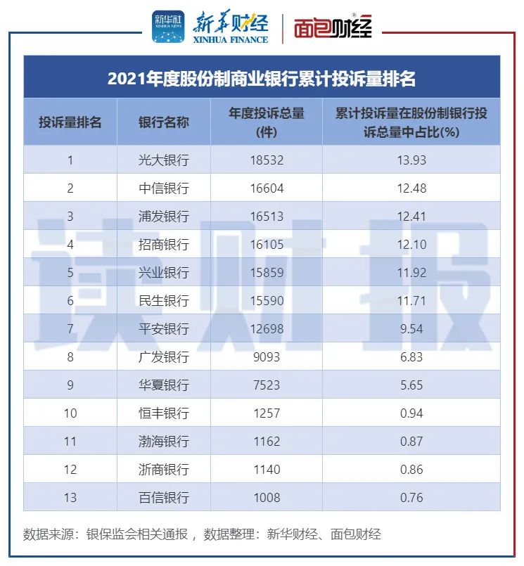 股份銀行被投訴量排名:光大年度最高、興業季度最高、廣發密度最大