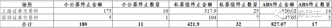 從私募債產品來看,單只債券最大終止金額為30億元,為蘭州新區城市發展投資集團有限公司2021年面向專業投資者非公開發行公司債券。最小終止金額為4億元,為重慶市石柱工業發展集團有限公司2021年面向專業投資者非公開發行公司債券。
