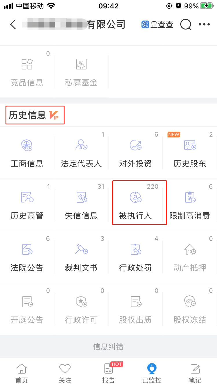 借助【企查查】、【啟信寶】等第三方平臺(tái)中【歷史被執(zhí)行人】功能,進(jìn)行信息分析。第三方平臺(tái)通過對(duì)執(zhí)行網(wǎng)的公開數(shù)據(jù)進(jìn)行比對(duì),將已結(jié)案撤網(wǎng)的執(zhí)行案件歸入【歷史被執(zhí)行人】中。