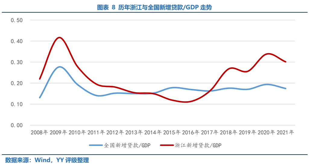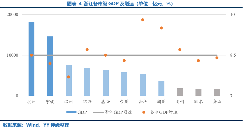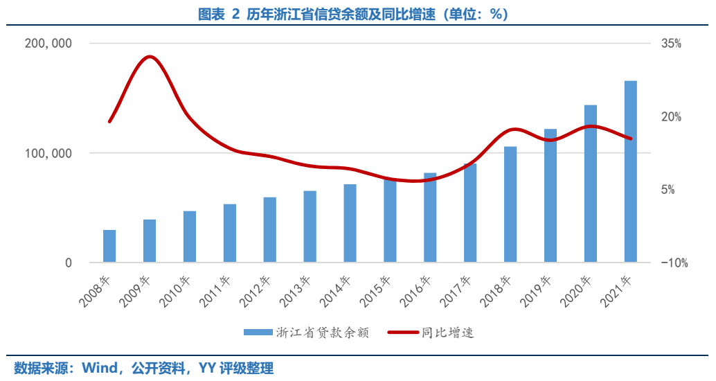 浙江省外向經濟活躍,GNP一度反超GDP,民營、小微經濟高度活躍,為浙江省帶來旺盛的信貸需求,大中小銀行遍地開花,錯位競爭拉動區域銀行盈利水平。