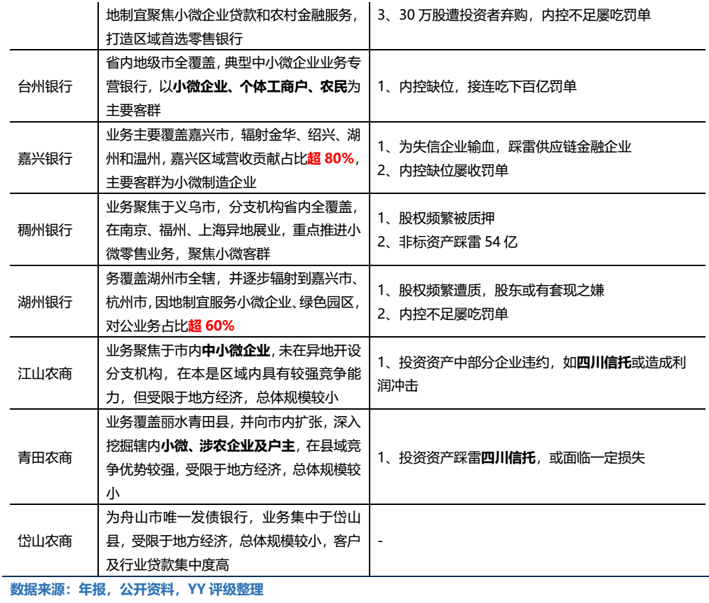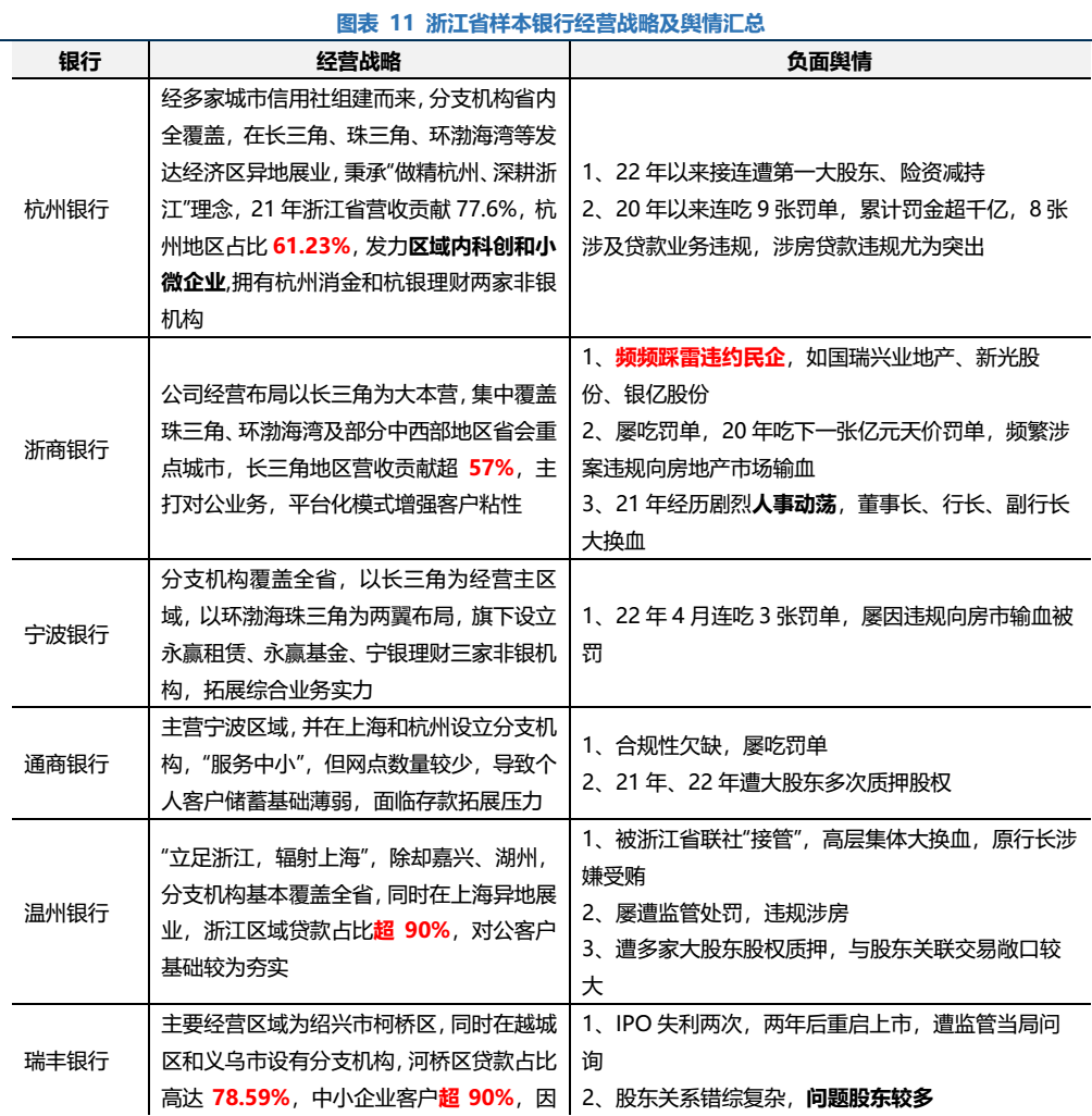 由于浙江的塊狀經濟屬性,樣本行之間表現出差異化特征,上述四個維度分化較大。資產投向方面,有親基建的杭州銀行、有親零售的寧波銀行、亦有親租賃和商務服務的通商銀行……但他們都奠基于民營經濟,深耕小微客戶。資產質量方面,部分銀行不良雖有抬頭傾向,但隨著不良處置力度加大,區域不良將仍較為可控。盈利能力方面,有盈利翹楚的臺州銀行,有優等生寧波銀行,亦有吊車尾的溫州銀行,本地經濟稟賦固然是決定盈利的重要因素,差異化經營策略亦是制勝關鍵。資本充足性方面,樣本行均距監管標準有一定安全邊際,高位撥備或能實現區域跨越周期。