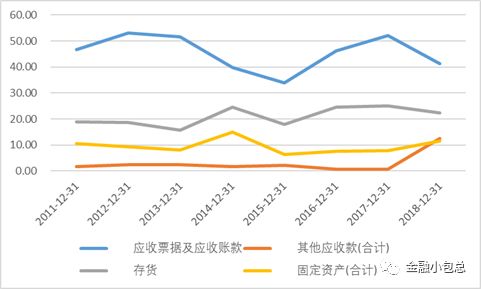 公司資產(chǎn)結(jié)構(gòu)中流動性資產(chǎn)占絕大部分,2018年公司流動資產(chǎn)占總資產(chǎn)比高達(dá)86.03%,而公司流動性資產(chǎn)中主要由應(yīng)收票據(jù)和應(yīng)收賬款、其他應(yīng)收款構(gòu)成,且這三項(xiàng)的比例逐年上升,這反映出公司在產(chǎn)業(yè)鏈中的弱勢地位。
