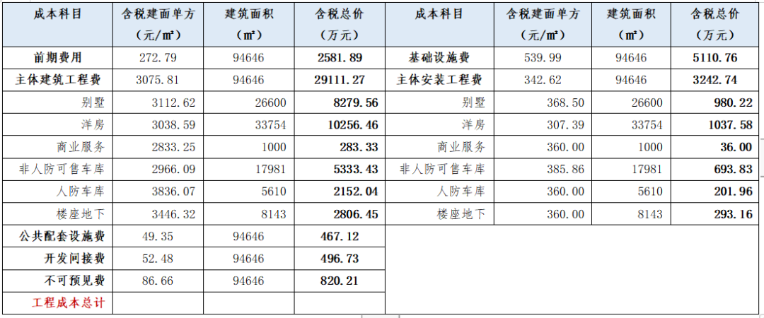 工程成本通常包括:前期工程費、主體建安工程費、景觀環境工程費、社區管網工程費、公共配套設施成本、工程建設其他費用以及開發間接費等。