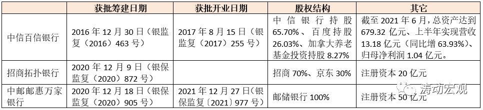 法人直銷銀行通常是傳統銀行與互聯網公司相結合的產物,目前已有三家直銷銀行成立,其中兩家已開業,分別為中信百信銀行、招商拓撲銀行(已獲批籌建)和中郵郵惠萬家銀行(已獲批開業)。某種程度上來說,郵儲銀行和招商銀行接連被批準籌建直銷銀行可能是一個信號,畢竟這是五年來法人直銷銀行設立首次被放開。直銷銀行本身具有開放銀行的內涵,沒有物理網點,自然也不受區域經濟限制,可以通過開放銀行的形式從事金融產品的互聯網銷售業務(未在直銷銀行開設銀行賬戶的用戶同樣可以在直銷銀行通過注冊賬戶來購買存款、理財和保險產品實現資金留存),并聚焦服務于長尾和年輕客群。