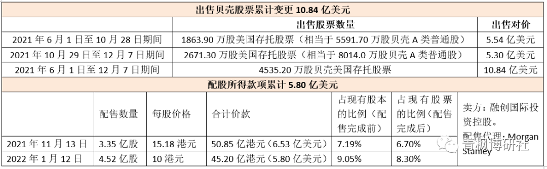 1、2021年6月1日至2021年12月7日期間,融創(chuàng)累計(jì)出售4535.20萬股貝殼美國存托股票,累計(jì)對價為10.84億美元。