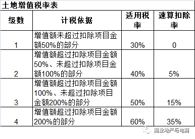 土地增值稅是以轉(zhuǎn)讓房地產(chǎn)取得的收入,減除法定扣除項(xiàng)目金額后的增值額作為計(jì)稅依據(jù),并按照四級(jí)超率累進(jìn)稅率進(jìn)行征收。