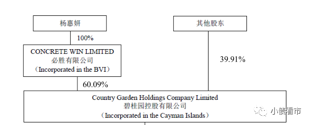 從股權結構看,碧桂園的控股股東為必勝有限公司,持股比例為61.25%,公司實際控制人為楊惠妍。