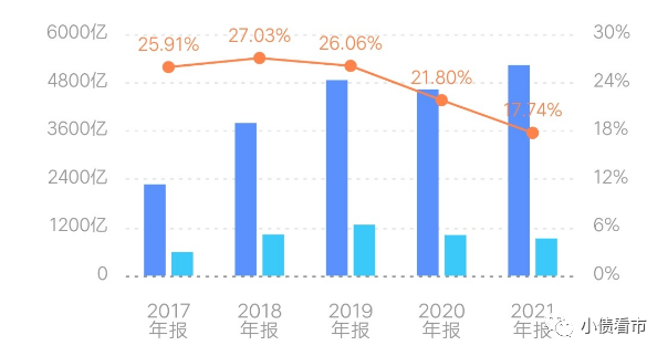 值得注意的是,碧桂園本就不高的毛利率,近年來持續走低,2021年其毛利率和凈利率分別為17.74%和7.84%,盈利能力欠佳。