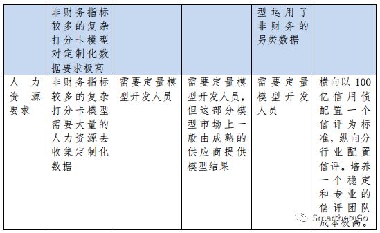 筆者愚見,目前咨詢公司、系統廠商和其他一些供應商提供內評模型時以打分卡模型為主,簡單的打分卡模型以財務指標打分為主,這類型的模型筆者以為價值不大。基于因果關系和研究框架、并通過信評專家、定價數據、外評數據、違約案例等等方式來校準排序后的復雜打分卡模型價值稍大些,但這類型的復雜打分卡模型需要全覆蓋、高質量、有歷史切片、定制化程度高,且可持續更新的數據為基礎,目前極少數咨詢公司可以提供此類的解決方案和數據基礎。
