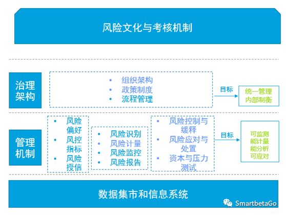 內部信用評級體系的建設需要從風險文化和考核機制、治理架構、管理機制以及數據集市和信息系統多個維度,立體化考慮,而不僅僅是信用研究的方法論,如下圖所示:
