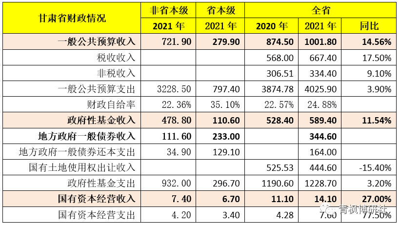 3、甘肅地區(qū)的財(cái)政對(duì)非稅收入的依賴度很高。例如,2021年全年1001.80億元的公共預(yù)算收入中,非稅收入占比高達(dá)33%,幾乎是稅收收入的一半。
