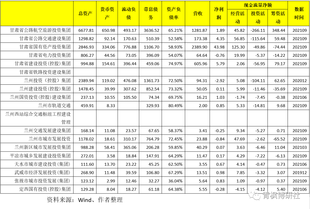 五、甘肅地區(qū)城投的債務(wù)及家底情況全面梳理