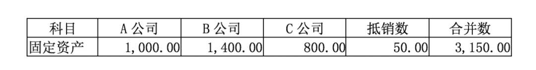 以關聯交易中最簡單的固定資產關聯交易舉例,A、B、C三家企業合并破產重整,A公司固定資產賬面價值1000萬元,B公司固定資產賬面價值1400萬元,C公司固定資產賬面價值800萬元。A公司曾將成本為300萬元的電腦以450萬元的價格出售給C公司自用,該批電腦按3年計提折舊,折舊方法選擇平均年限法,截至破產申請受理日已使用24個月。合并時,需將資產成本予以調減450-300=150萬元(對應調整以前年度損益),并將18個月累計多計提的折舊予以調增150/36*24=100萬元(對應調整當期損益和以前年度損益),合并后固定資產金額如下: