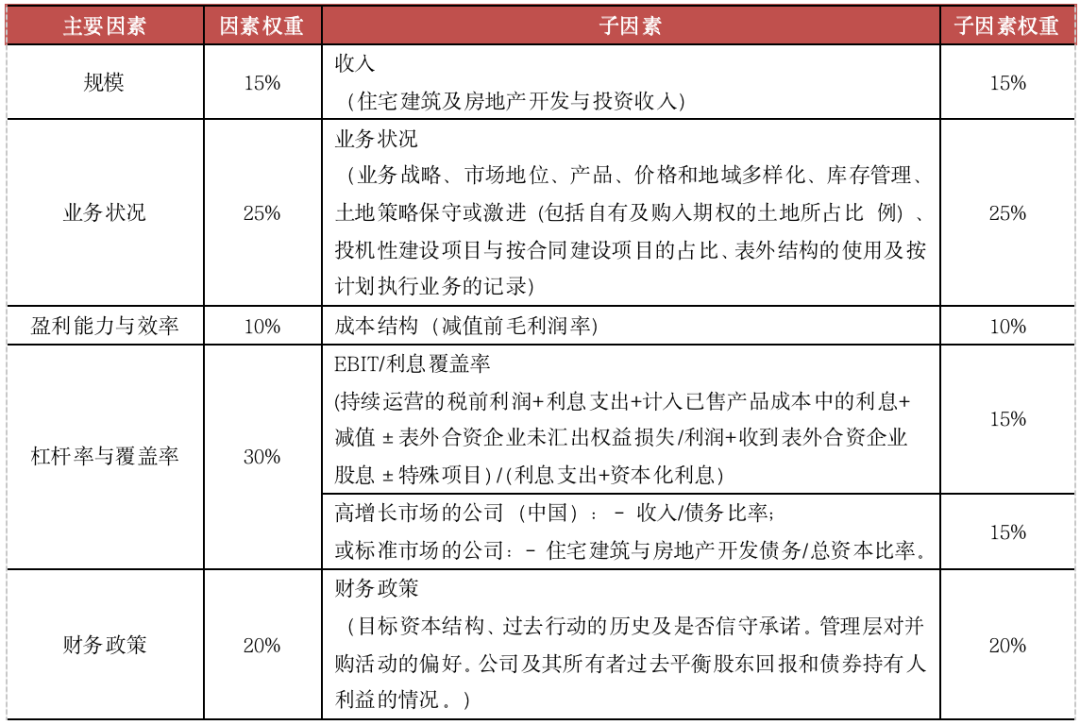 表:穆迪房企評(píng)級(jí)打分卡情況