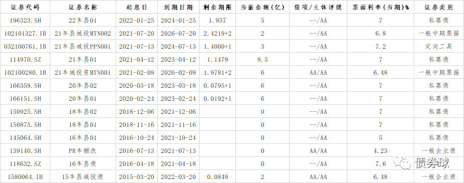 豐縣城投累計發(fā)行13只債券,其中有兩只中票、1只PPN、兩只企業(yè)債和8只非公開公司債。目前處于存續(xù)狀態(tài)的債券有8只,其中有兩只中票、1只PPN、1只企業(yè)債和4只非公開公司債。