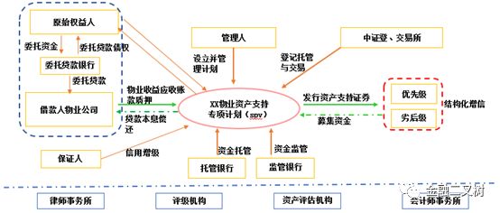 物業(yè)費(fèi)ABS的交易結(jié)構(gòu)有3中類(lèi)型,最常見(jiàn)的是物業(yè)合同債權(quán)直接轉(zhuǎn)讓和基于物業(yè)費(fèi)質(zhì)押擔(dān)保貸款債權(quán)轉(zhuǎn)讓兩種模式;