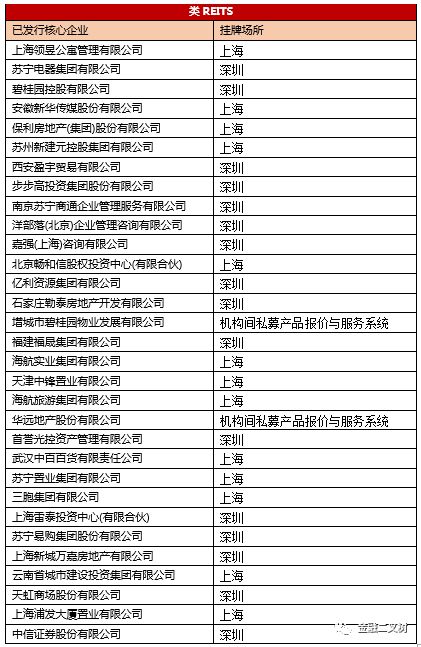 3、已發(fā)行類(lèi)REITS原始權(quán)益人