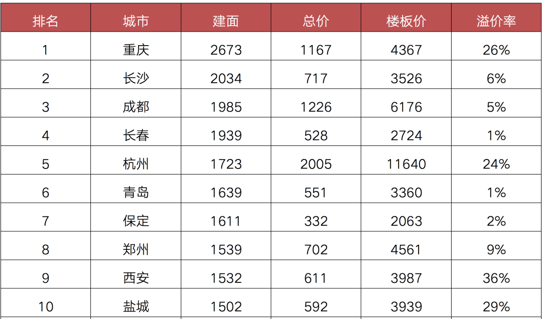 事實上,不只是重慶,長沙、成都等中西部城市前三季度的樓板價相比去年同期均有不同程度的上漲,主要是首輪集中土拍熱度較高,核心板塊宅地供應明顯增加,帶動整體地價上漲。
