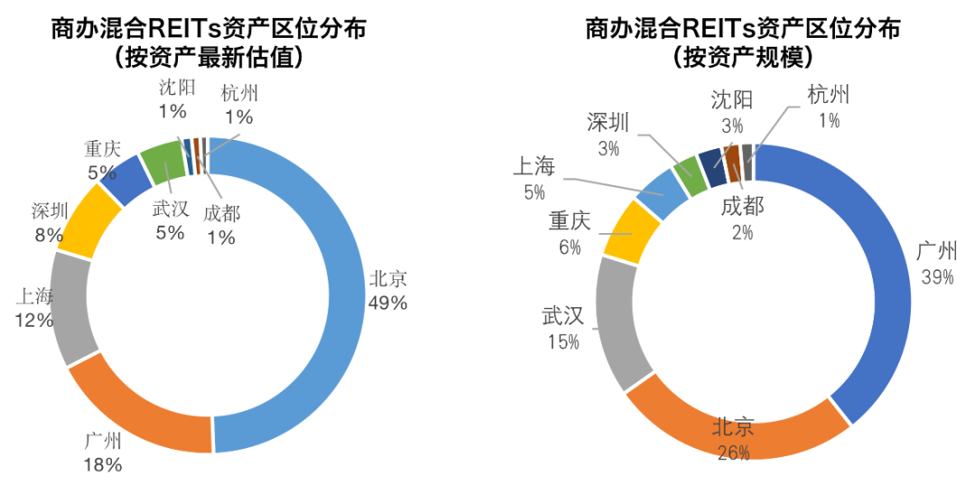 在擁有中國內地資產的海外REITs中,越秀產業信托(下稱越秀REIT)、領展產業信托(下稱領展REIT)及匯賢產業信托(下稱匯賢REIT)是以商辦類資產為主,均分布在一線及新一線城市。