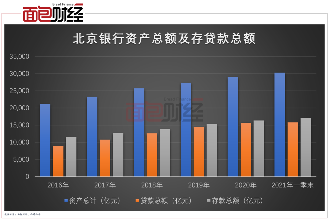 業績穩定向好的同時,北京銀行的資產規模持續擴大,成為首家超過3萬億的城商行。