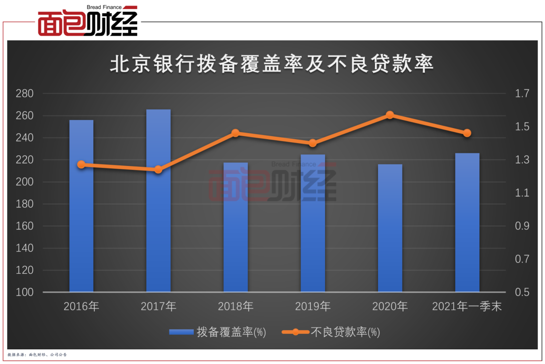 截至2021年一季末,該行的不良貸款率為1.46%,較年初下降0.11個百分點,撥備覆蓋率為226.03%,較年初提升10.08個百分點。隨著存量風險的加快出清,未來該行的資產質量或將逐季提升。