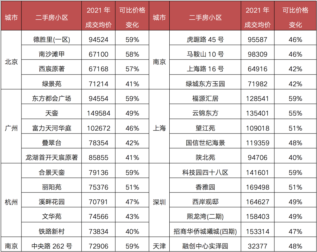 漲幅超40%在售高檔二手房小區(qū)(元/平方米)