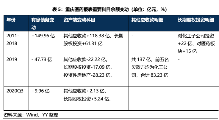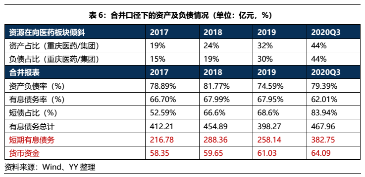 集團層面來看,其財務弊病是母公司和重慶醫(yī)藥二者的集合。由于近幾年在著重培育醫(yī)藥板塊、縮減化工板塊,集團新增的負債和資產基本都集中于此,導致集團新增債務的問題基本源于重慶醫(yī)藥,此外母公司的遺留問題也是成為一大包袱。