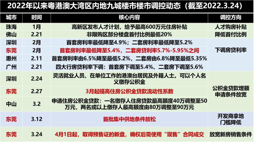 3月中旬,東莞發布首批居住用地出讓公告,相比去年出讓條件寬松 ①部分取消限售價格 ②部分取消無償配建要求 ③競拍保證金或起拍價下調。